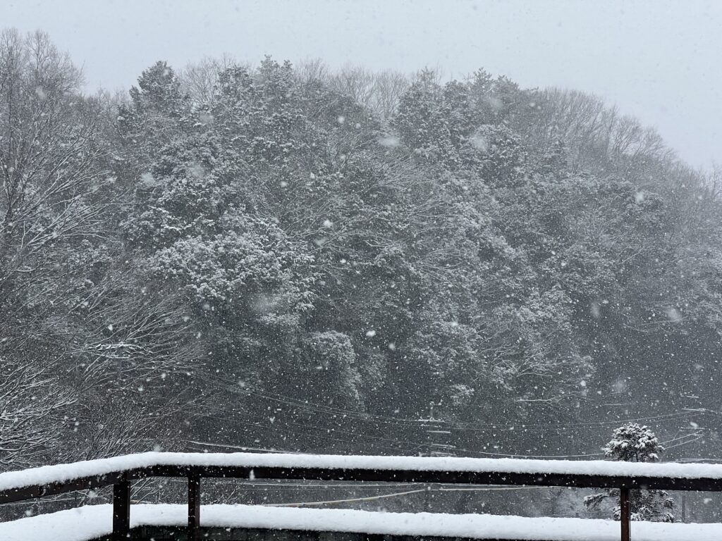 今日の不死王閣は一面雪景色となりました。幸い外での飛行実習はなかったのでホッ。